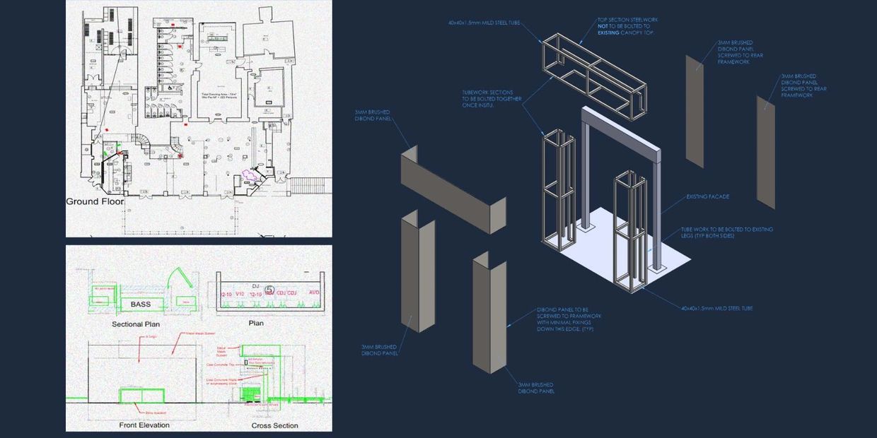 Example - This is a concept and part of a detail drawing pack , for a Night Club & Beach Terrace - Brighton England .